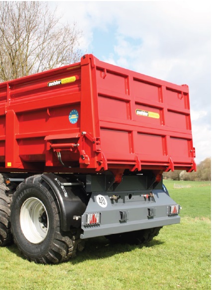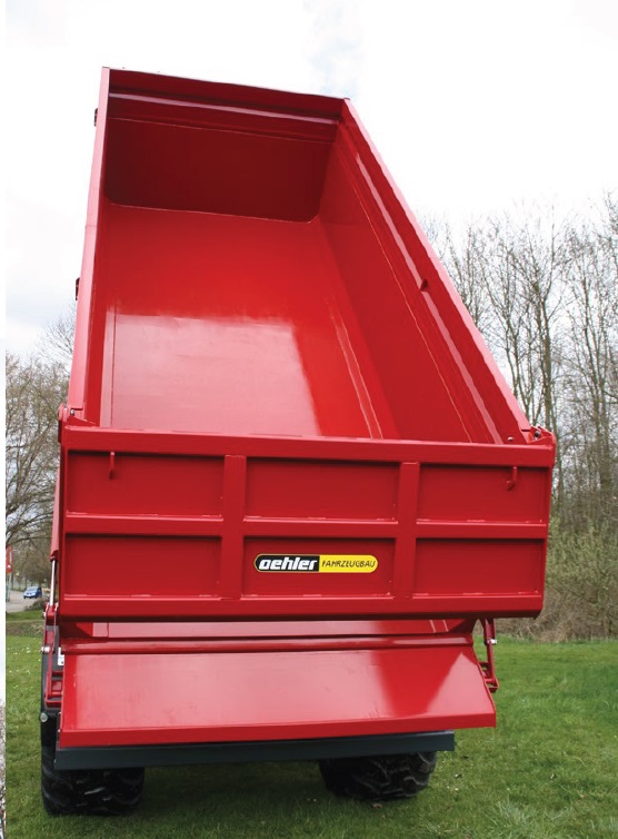 – Construcţia benei deosebit de stabilă cu picior de sprijin cu acţionare hidraulică si bară de protecţie antiîmpănare spate, stabilă